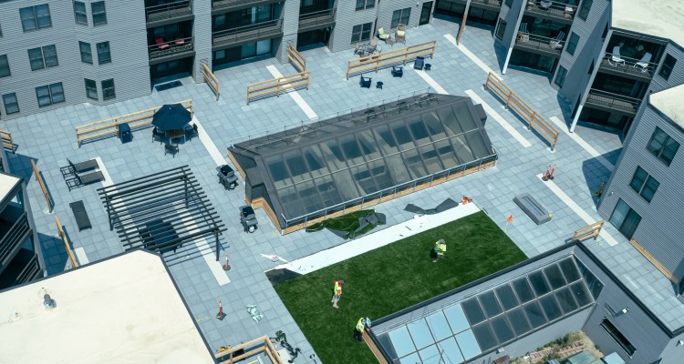 Glacial ridge installed 9,000+ square feet of concrete rooftop pavers, supplied by County Material, for the tenants of Blair Arcade to enjoy and utilize this amazing roof top space.